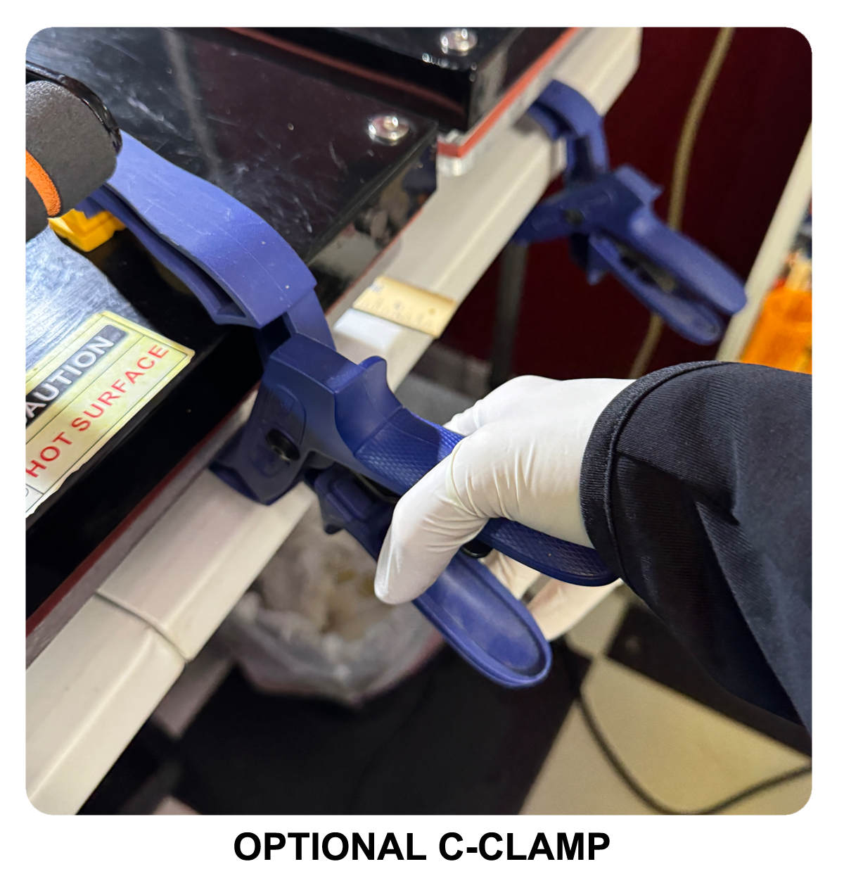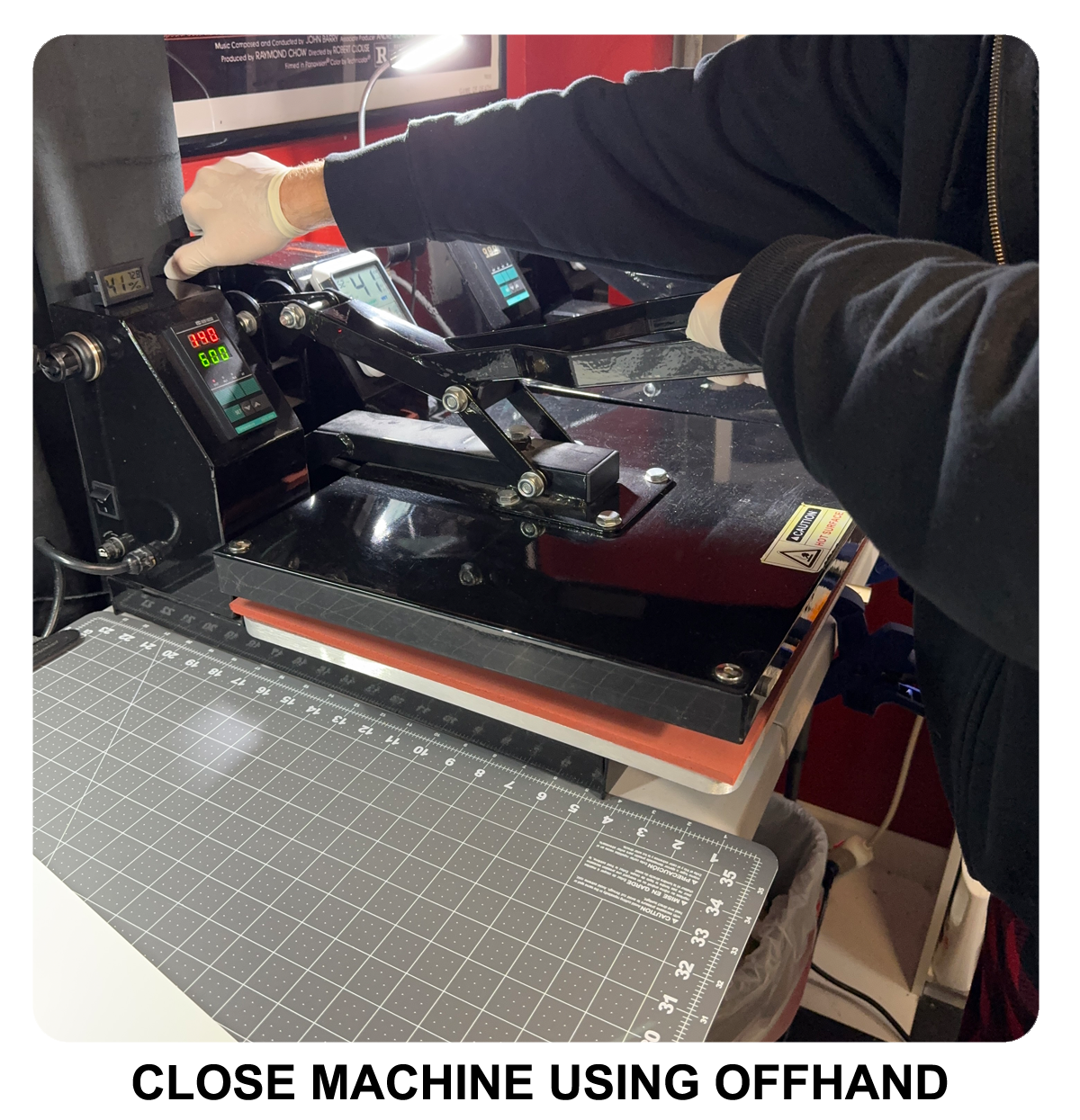 - Clamshell Press Machine, which closes