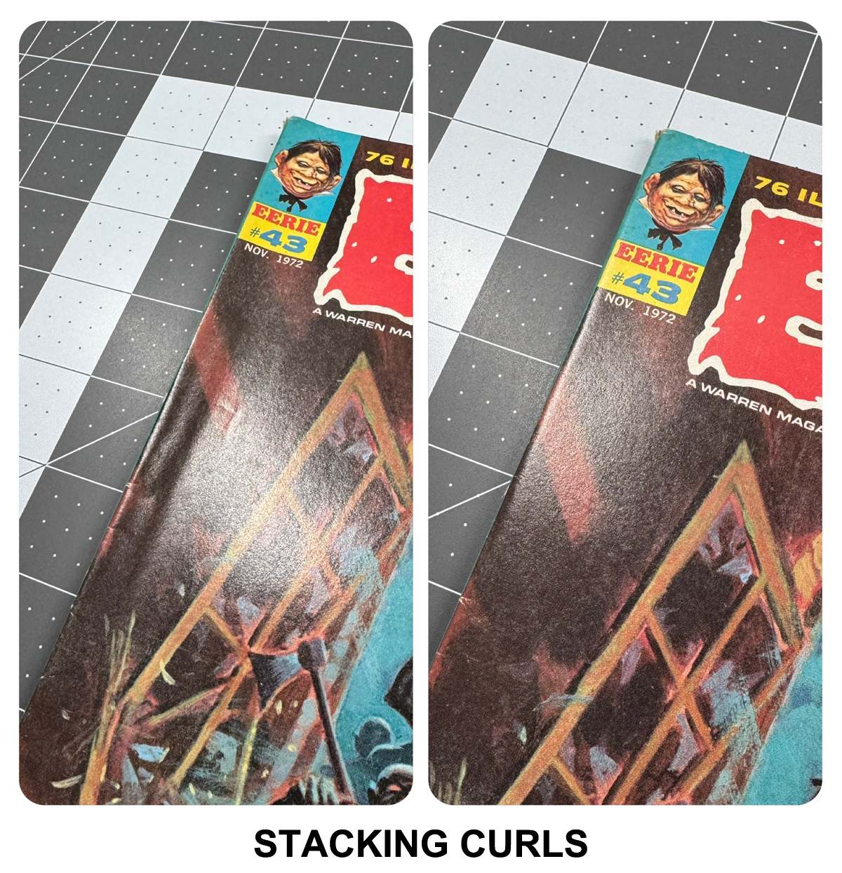 book that has been wrinkled or damaged. Comics can get bent